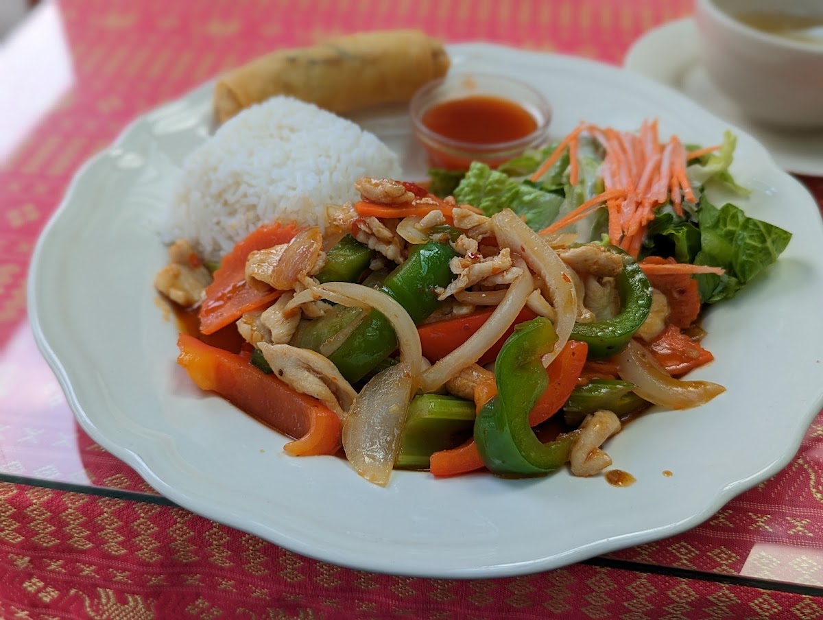 The green curry lunch combo stands out, offering a delightful mix of curry, jasmine rice, a spring roll, and a crisp salad, delightfully noted for its rich flavor and ample serving size. Reviewers like Anaya Patil have expressed their excitement for a return visit, highlighting the dish's perfect balance of ingredients.